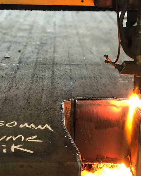 - OXYGEN (OPTIC) CUTTING: Pressurized oxygen and flame are used in this steel cutting method, also known as flame cutting. In our company, all kinds of carbon steels up to 650 mm thick are cut with high surface quality on 3mt X 12m sized cnc benches. Thanks to the method of using multiple torches at the same time, there are more affordable costs with shorter cutting times.